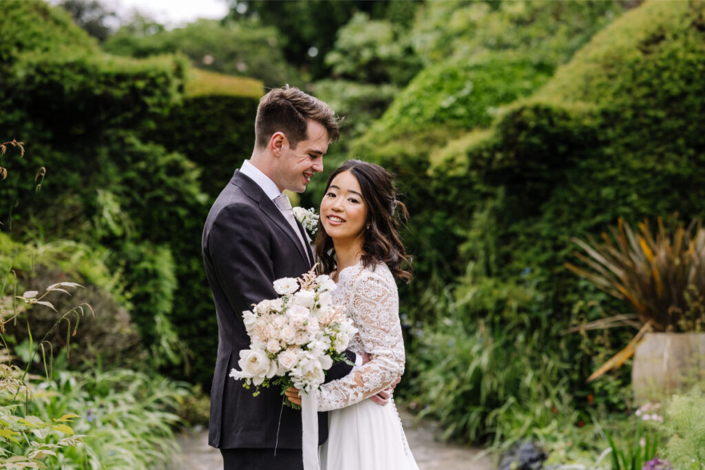 Yukina & Callum’s early summer micro wedding in the Cotswolds celebrated two distinct floral visions. With Yukina’s family travelling from Japan, Yukina wanted elegant, Bridgerton-inspired romance for the ceremony and a whimsical, secret-garden style for their reception. A florist’s dream brie! It was such a joyous flower journey working with Yukina and bringing her English flower inspirations to life.